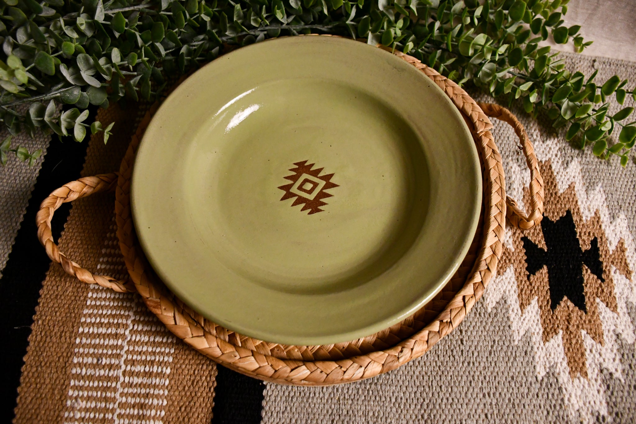Handcrafted Wild Rojo dinner plates bring color and texture to everyday meals. Choose from Matte Black, White, Turquoise, or Sage Green and explore eight unique designs, each showing the subtle variations of handmade ceramics.